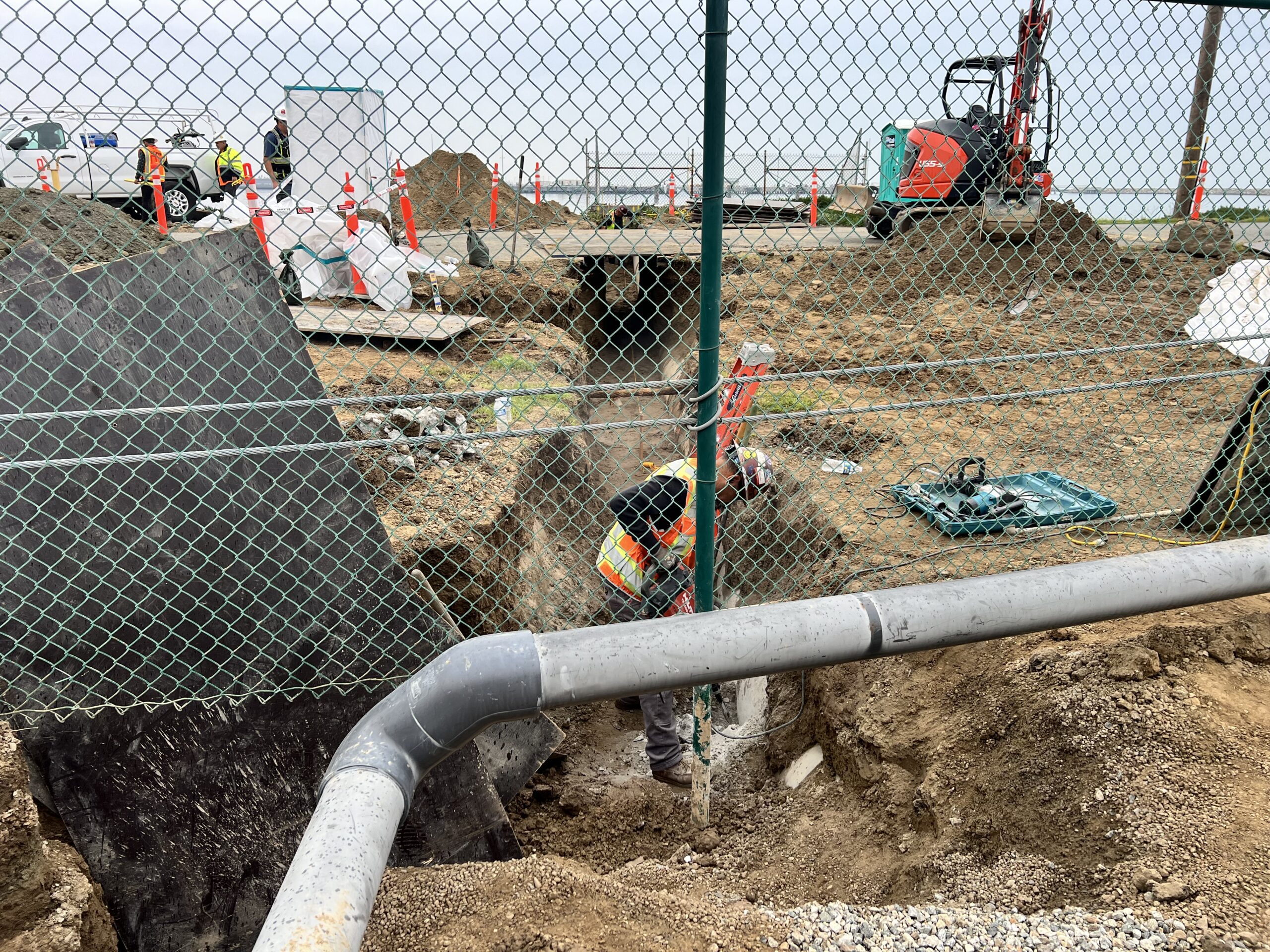 Scope included removing the existing ACM pipe and replace with stainless steel pipe, removing broken flap gates with new flap gate, removing corroded fence and installing new stainless steel fence.